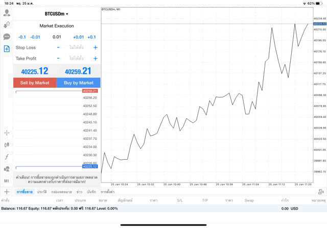 การเทรด Crypto BTCUSD 0.01 lot บนแอพเล่นหุ้น mt4 โบรกเกอร์ forex exness