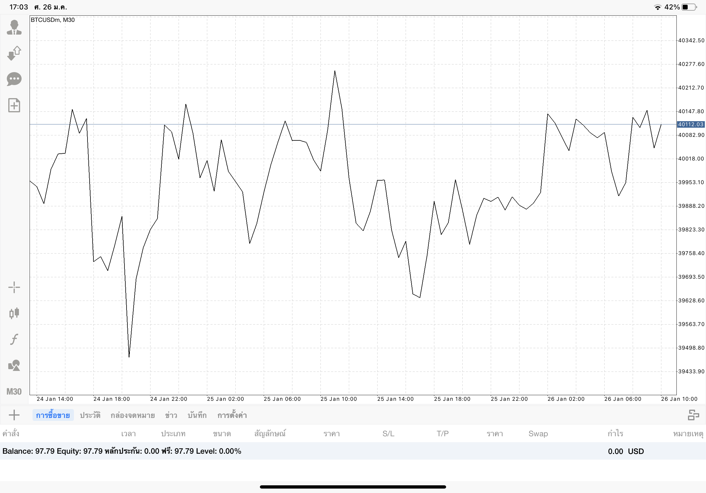 การเทรด Crypto BTCUSD แบบ CFD บนแอพเล่นหุ้น Meta Trader 4 หรือ Mt4