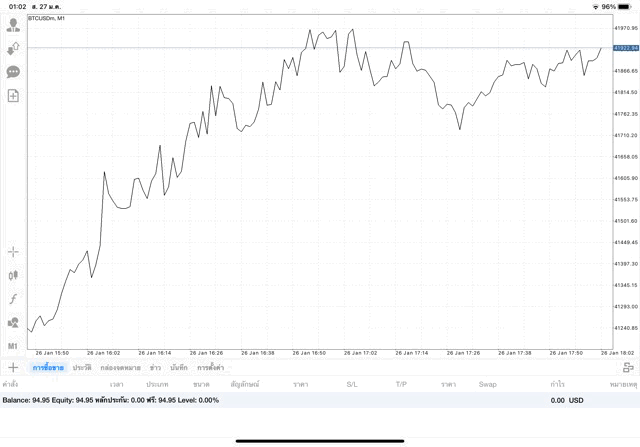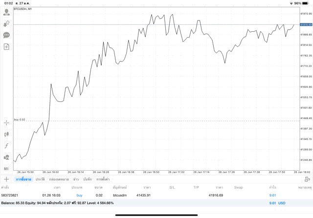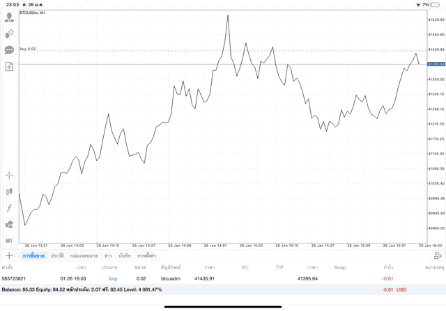 เริ่มแล้ว การเทรด Crypto BTCUSD 0.02 lot บนแอพเล่นหุ้น mt4 เมื่อราคามีการเปลี่ยนแปลงจะส่งผลต่อกำไรหรือขาดทุนขึ้นกับการเทรดครั้งนี้ เริ่มต้น ติดลบก่อนนะ