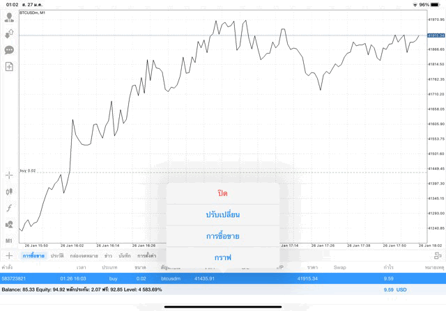 การเทรด Crypto BTCUSD 0.02 lot บนแอพเล่นหุ้น mt4 โบรกเกอร์ forex exness