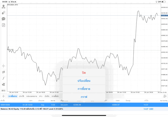 การเทรด Crypto BTCUSD แบบ CFD บนแอพเล่นหุ้น Meta Trader 4 หรือ Mt4