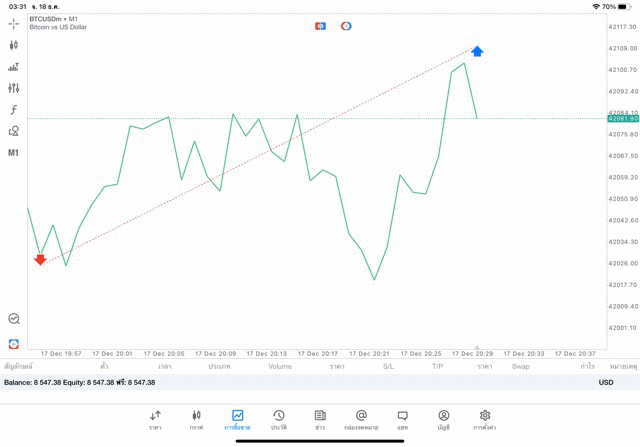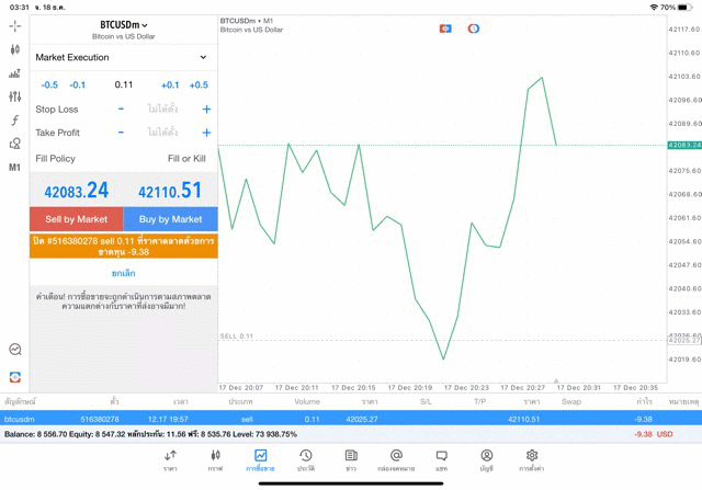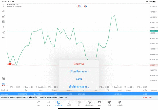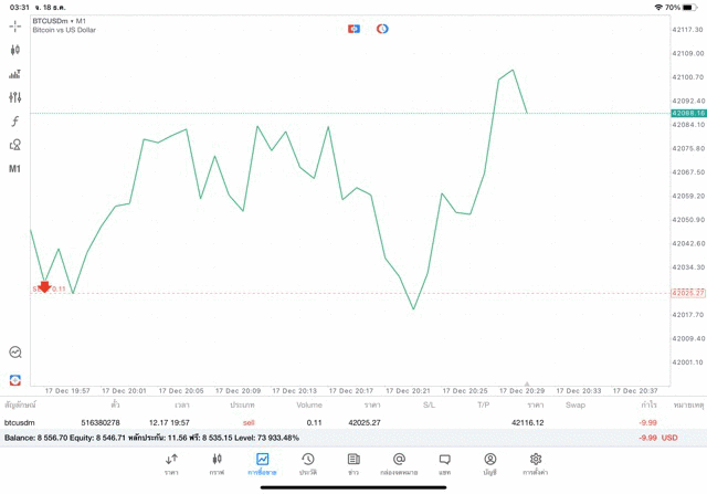 เริ่มแล้ว การเทรด Crypto BTCUSD บนแอพเล่นหุ้น mt5 เมื่อราคามีการเปลี่ยนแปลงจะส่งผลต่อกำไรหรือขาดทุนขึ้นกับการเทรดครั้งนี้ เริ่มต้น ติดลบก่อนนะ
