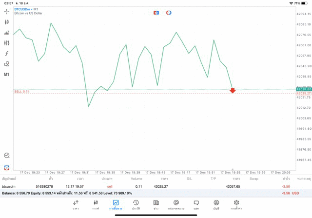 การเทรด Crypto BTCUSD 0.11 lot แอพเล่นหุ้น mt5 โบรกเกอร์ forex exness