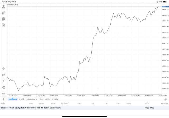 การเทรด Crypto BTCUSD แบบ CFD บนแอพเล่นหุ้น Meta Trader 4 หรือ Mt4