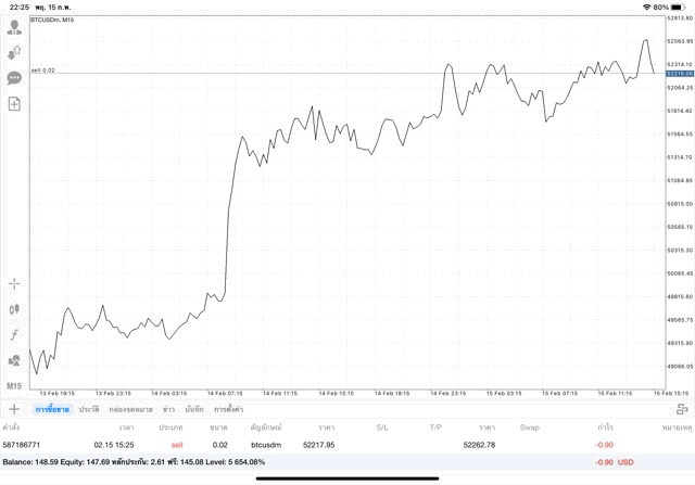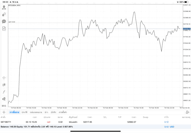 เริ่มแล้ว การเทรด Crypto BTCUSD 0.02 lot บนแอพเล่นหุ้น mt4 เมื่อราคามีการเปลี่ยนแปลงจะส่งผลต่อกำไรหรือขาดทุนขึ้นกับการเทรดครั้งนี้ เริ่มต้น ติดลบก่อนนะ