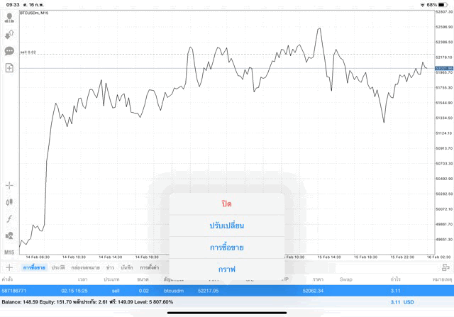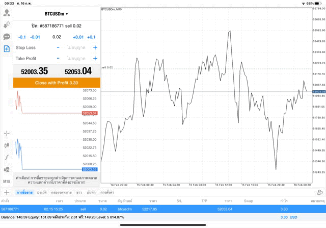 การเทรด Crypto BTCUSD 0.02 lot บนแอพเล่นหุ้น mt4 โบรกเกอร์ forex exness