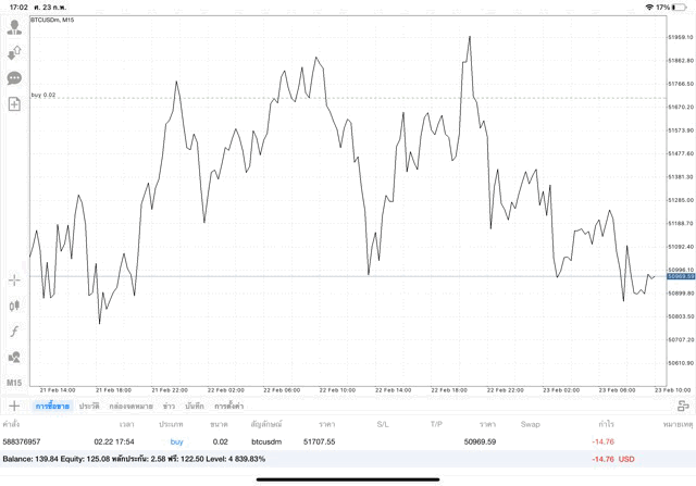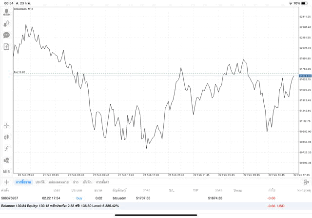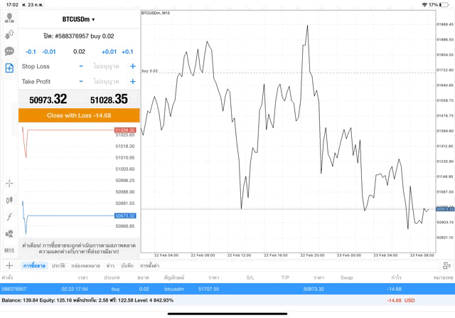 เริ่มแล้ว การเทรด Crypto BTCUSD 0.02 lot บนแอพเล่นหุ้น mt4 เมื่อราคามีการเปลี่ยนแปลงจะส่งผลต่อกำไรหรือขาดทุนขึ้นกับการเทรดครั้งนี้ เริ่มต้น ติดลบก่อนนะ