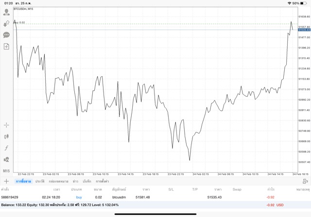 การเทรด Crypto BTCUSD 0.02 lot บนแอพเล่นหุ้น mt4 โบรกเกอร์ forex exness