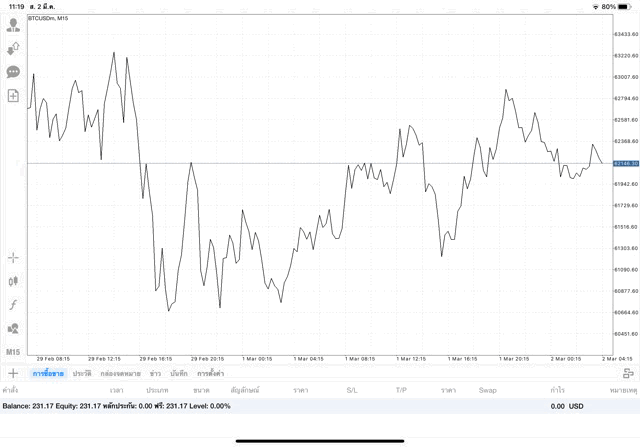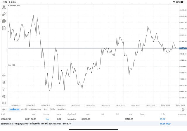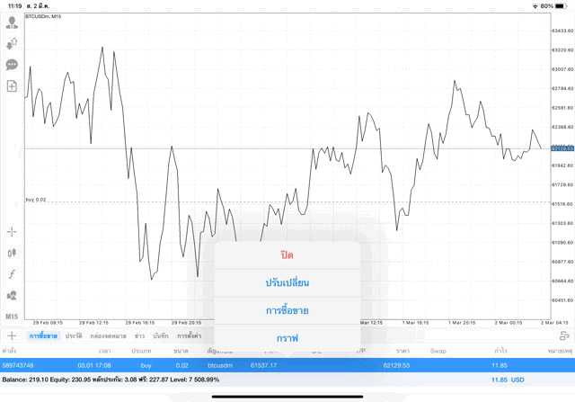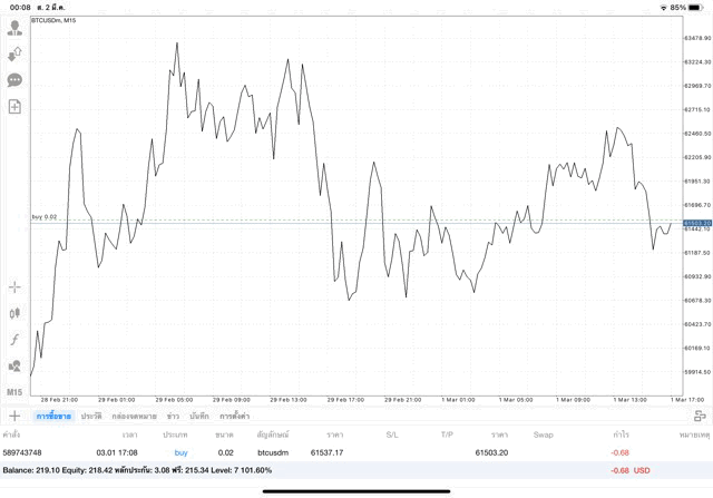เริ่มแล้ว การเทรด Crypto BTCUSD 0.02 lot บนแอพเล่นหุ้น mt4 เมื่อราคามีการเปลี่ยนแปลงจะส่งผลต่อกำไรหรือขาดทุนขึ้นกับการเทรดครั้งนี้ เริ่มต้น ติดลบก่อนนะ