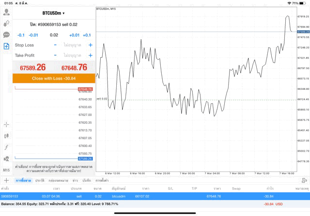 คลิ๊กปุ่มสีส้ม ปิดการซื้อขายครั้งนี้ ในขณะส่งคำสั่งปิดราคาเปลี่ยนแปลงยังมีผลต่อผลกำไรหรือขาดทุน