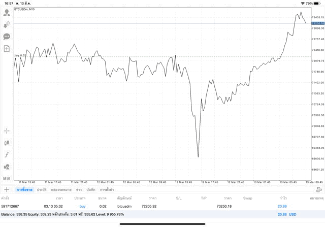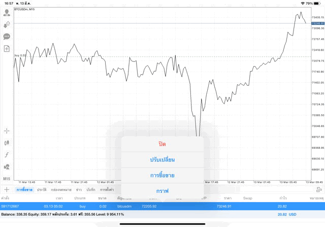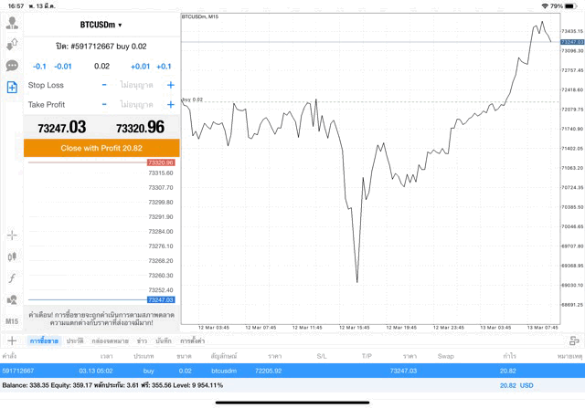 การเทรด Crypto BTCUSD 0.02 lot บนแอพเล่นหุ้น mt4 โบรกเกอร์ forex exness