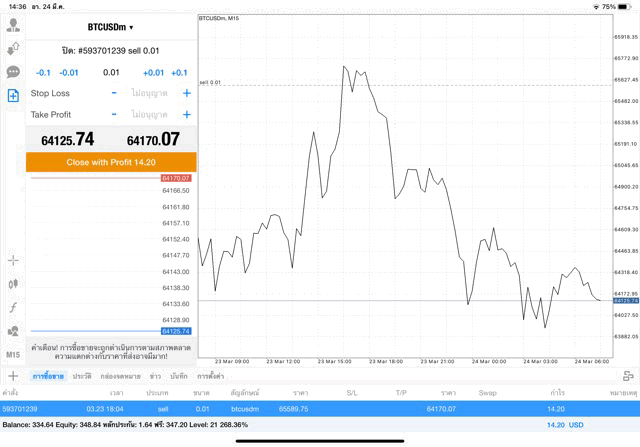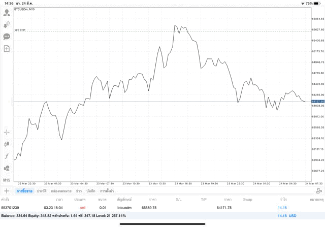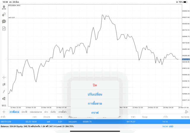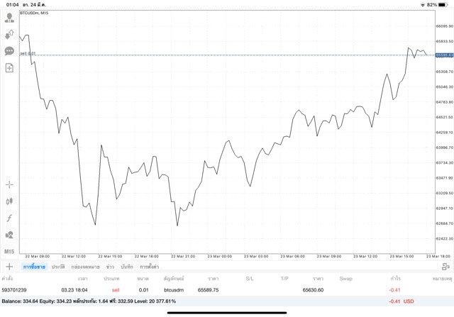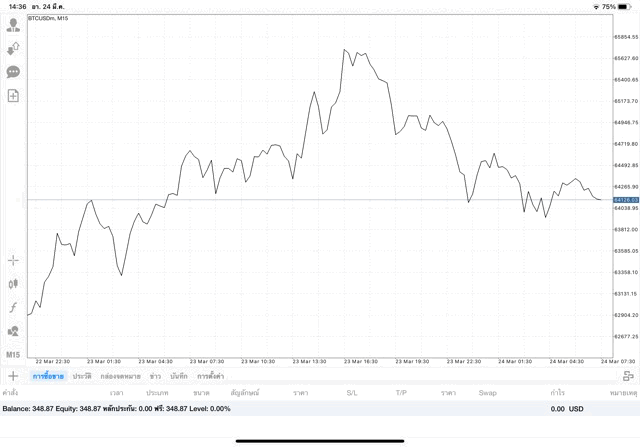 เริ่มแล้ว การเทรด Crypto BTCUSD 0.01 lot บนแอพเล่นหุ้น mt4 เมื่อราคามีการเปลี่ยนแปลงจะส่งผลต่อกำไรหรือขาดทุนขึ้นกับการเทรดครั้งนี้ เริ่มต้น ติดลบก่อนนะ