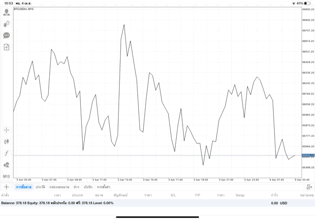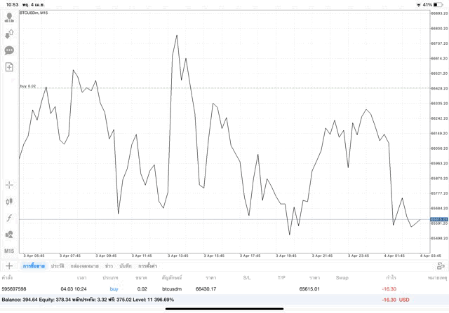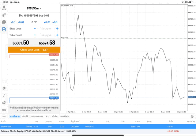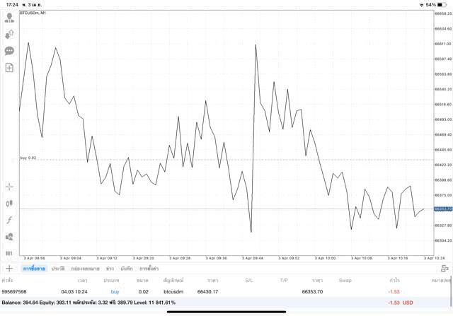 เริ่มแล้ว การเทรด Crypto BTCUSD 0.02 lot บนแอพเล่นหุ้น mt4 เมื่อราคามีการเปลี่ยนแปลงจะส่งผลต่อกำไรหรือขาดทุนขึ้นกับการเทรดครั้งนี้ เริ่มต้น ติดลบก่อนนะ