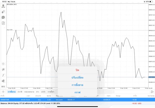 การเทรด Crypto BTCUSD 0.02 lot บนแอพเล่นหุ้น mt4 โบรกเกอร์ forex exness