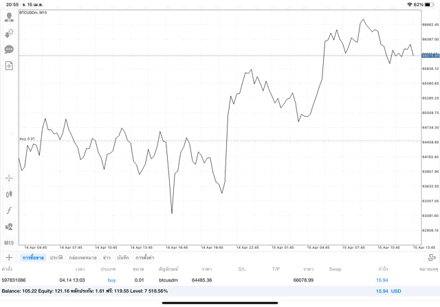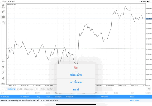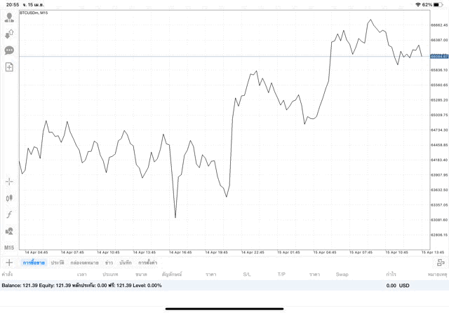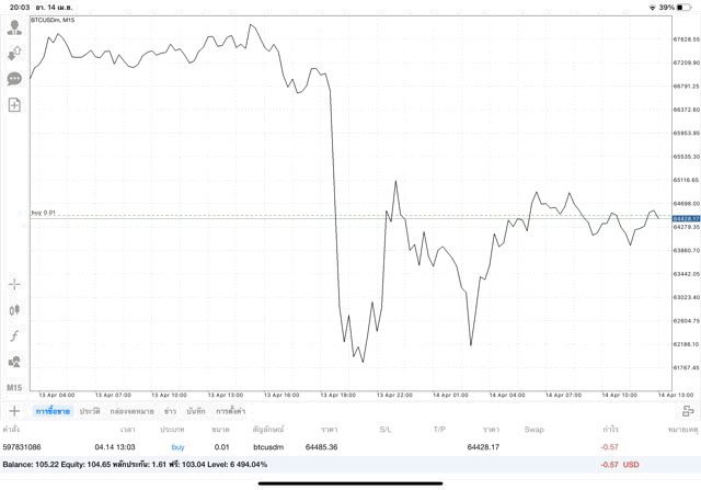 เริ่มแล้ว การเทรด Crypto BTCUSD 0.01 lot บนแอพเล่นหุ้น mt4 เมื่อราคามีการเปลี่ยนแปลงจะส่งผลต่อกำไรหรือขาดทุนขึ้นกับการเทรดครั้งนี้ เริ่มต้น ติดลบก่อนนะ