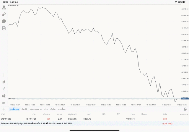 การเทรด Crypto BTCUSD 0.07 lot แอพเล่นหุ้น mt5 โบรกเกอร์ forex exness