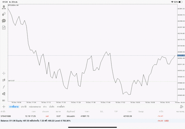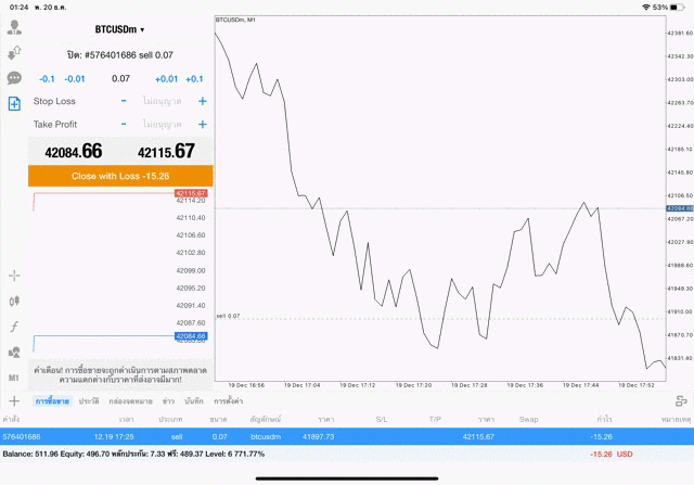 เริ่มแล้ว การเทรด Crypto BTCUSD บนแอพเล่นหุ้น mt4 เมื่อราคามีการเปลี่ยนแปลงจะส่งผลต่อกำไรหรือขาดทุนขึ้นกับการเทรดครั้งนี้ เริ่มต้น ติดลบก่อนนะ