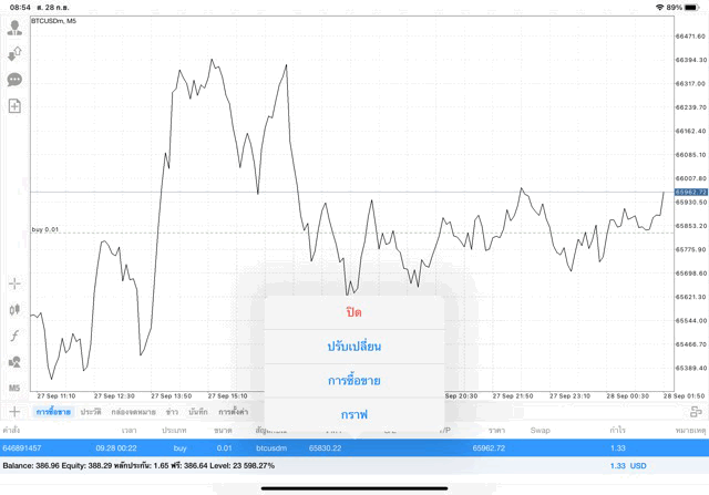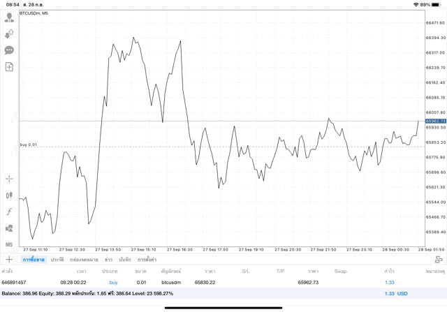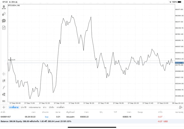 เริ่มแล้ว การเทรด Crypto BTCUSD ๐.๐๑ lot บนแอพเล่นหุ้น mt๔ เมื่อราคามีการเปลี่ยนแปลงจะส่งผลต่อกำไรหรือขาดทุนขึ้นกับการเทรดครั้งนี้ เริ่มต้น ติดลบก่อนนะ
