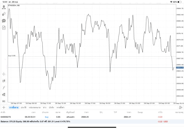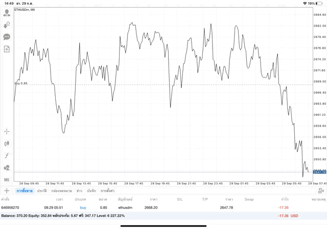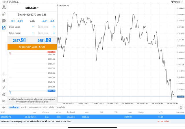 เริ่มแล้ว การเทรด Crypto ETHUSD ๐.๘๕ lot บนแอพเล่นหุ้น mt๔ เมื่อราคามีการเปลี่ยนแปลงจะส่งผลต่อกำไรหรือขาดทุนขึ้นกับการเทรดครั้งนี้ เริ่มต้น ติดลบก่อนนะ