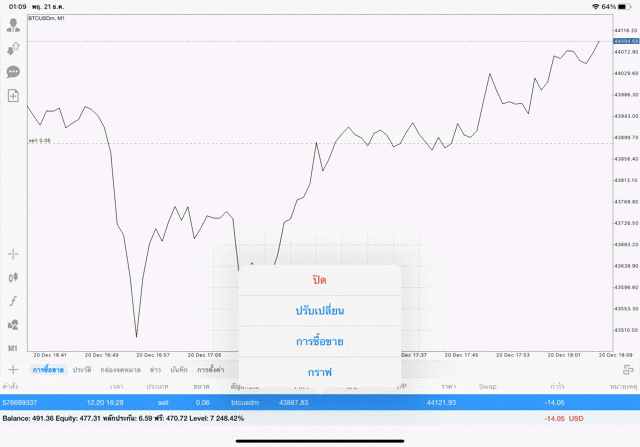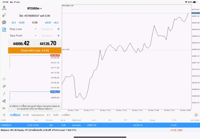 การเทรด Crypto BTCUSD 0.06 lot แอพเล่นหุ้น mt5 โบรกเกอร์ forex exness