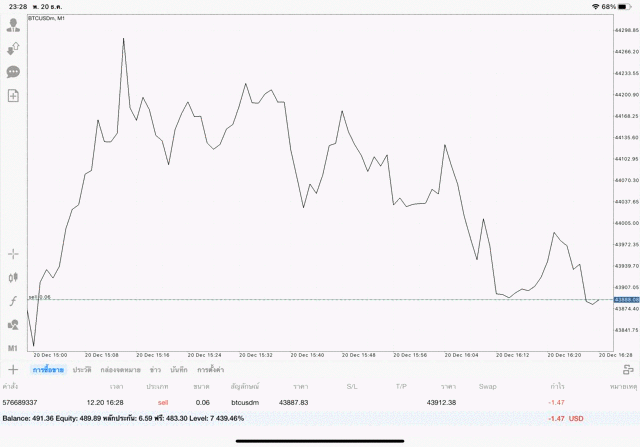 เริ่มแล้ว การเทรด Crypto BTCUSD บนแอพเล่นหุ้น mt4 เมื่อราคามีการเปลี่ยนแปลงจะส่งผลต่อกำไรหรือขาดทุนขึ้นกับการเทรดครั้งนี้ เริ่มต้น ติดลบก่อนนะ