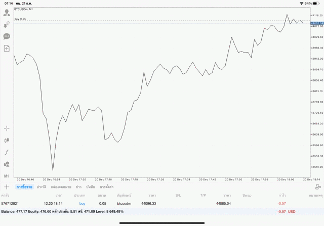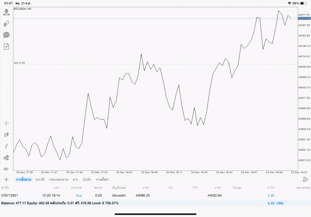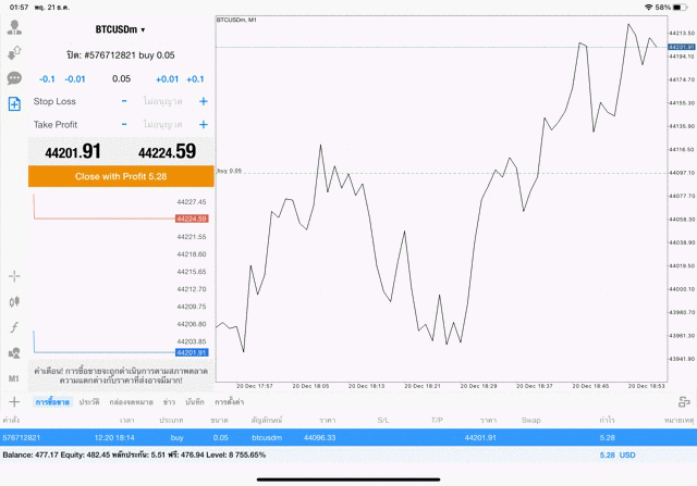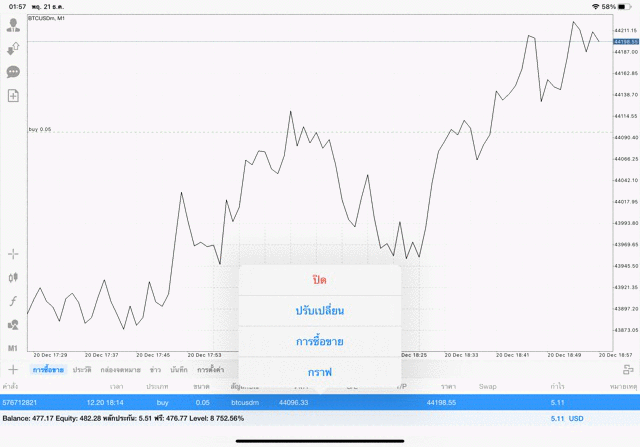 การเทรด Crypto BTCUSD 0.05 lot แอพเล่นหุ้น mt5 โบรกเกอร์ forex exness