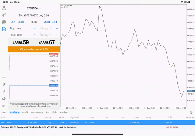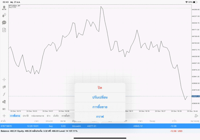 การเทรด Crypto BTCUSD 0.03 lot แอพเล่นหุ้น mt5 โบรกเกอร์ forex exness