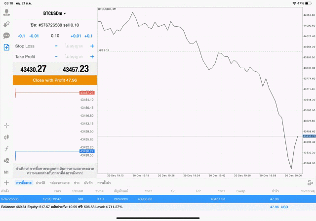 การเทรด Crypto BTCUSD 0.1 lot แอพเล่นหุ้น mt5 โบรกเกอร์ forex exness