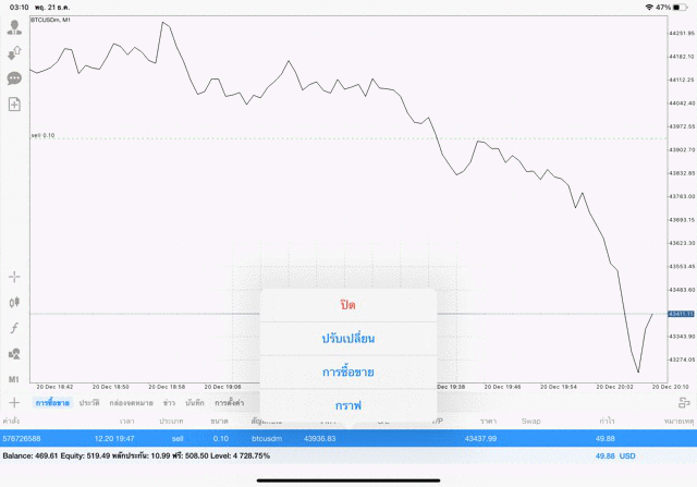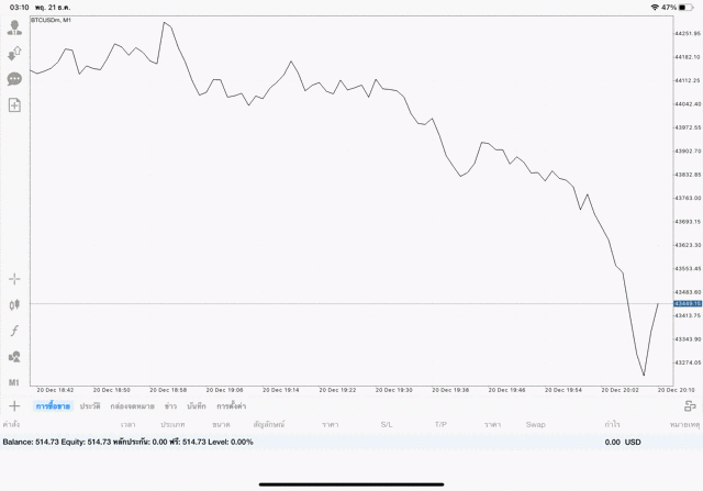 เริ่มแล้ว การเทรด Crypto BTCUSD บนแอพเล่นหุ้น mt4 เมื่อราคามีการเปลี่ยนแปลงจะส่งผลต่อกำไรหรือขาดทุนขึ้นกับการเทรดครั้งนี้ เริ่มต้น ติดลบก่อนนะ