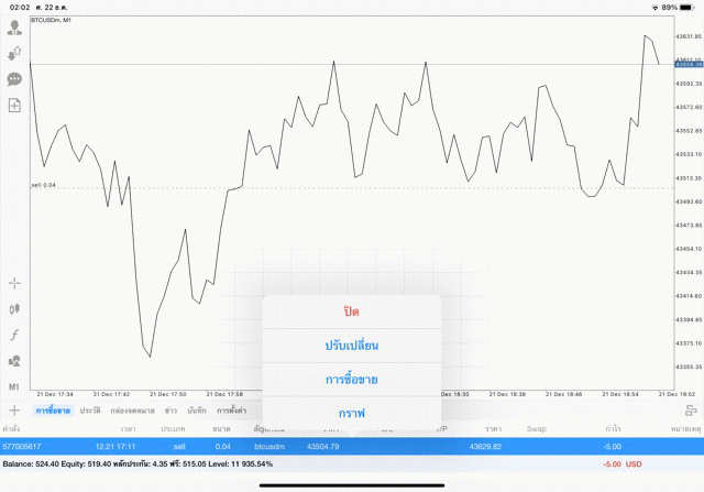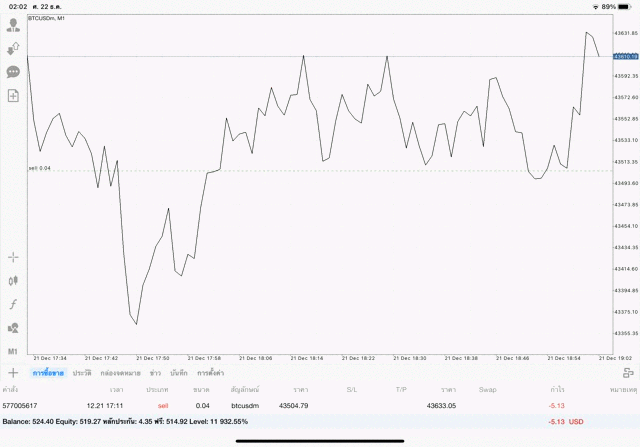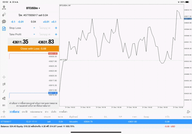 การเทรด Crypto BTCUSD 0.04 lot แอพเล่นหุ้น mt5 โบรกเกอร์ forex exness