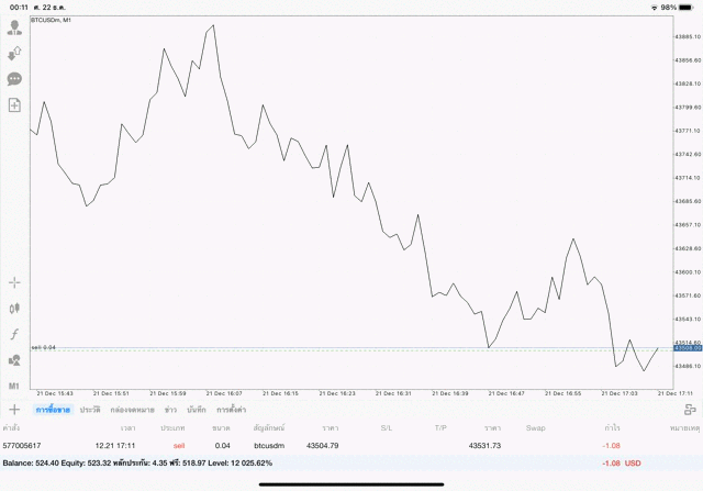 เริ่มแล้ว การเทรด Crypto BTCUSD บนแอพเล่นหุ้น mt4 เมื่อราคามีการเปลี่ยนแปลงจะส่งผลต่อกำไรหรือขาดทุนขึ้นกับการเทรดครั้งนี้ เริ่มต้น ติดลบก่อนนะ