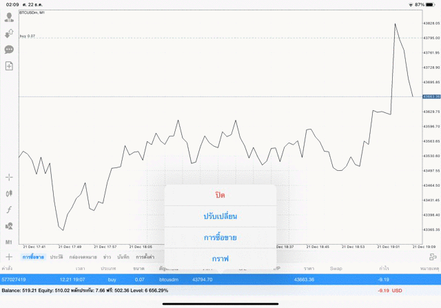 การเทรด Crypto BTCUSD 0.07 lot แอพเล่นหุ้น mt5 โบรกเกอร์ forex exness