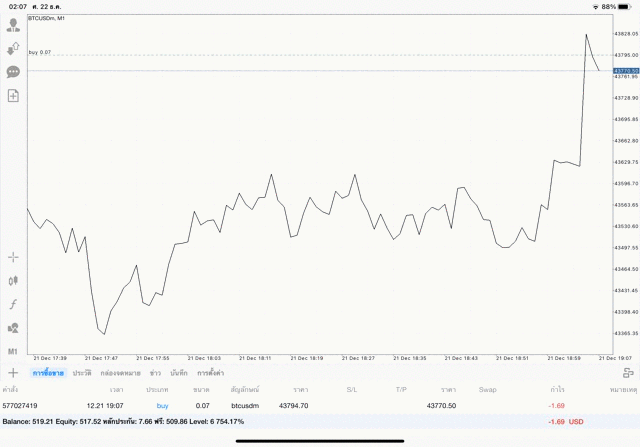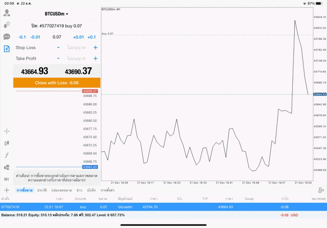 เริ่มแล้ว การเทรด Crypto BTCUSD บนแอพเล่นหุ้น mt4 เมื่อราคามีการเปลี่ยนแปลงจะส่งผลต่อกำไรหรือขาดทุนขึ้นกับการเทรดครั้งนี้ เริ่มต้น ติดลบก่อนนะ