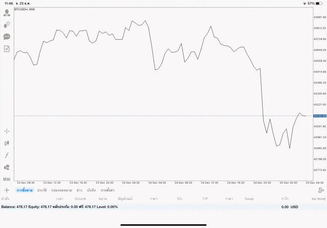 เริ่มแล้ว การเทรด Crypto BTCUSD บนแอพเล่นหุ้น mt4 เมื่อราคามีการเปลี่ยนแปลงจะส่งผลต่อกำไรหรือขาดทุนขึ้นกับการเทรดครั้งนี้ เริ่มต้น ติดลบก่อนนะ