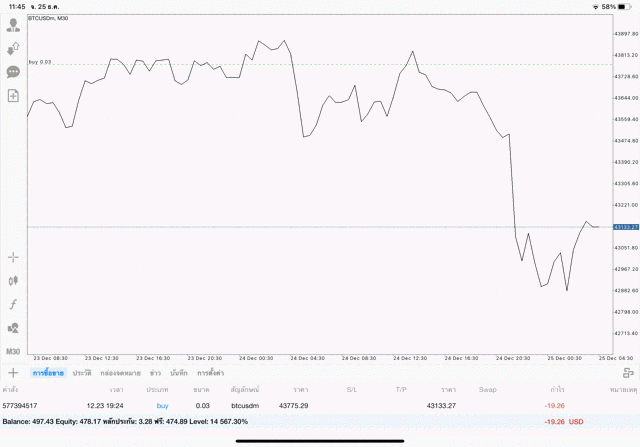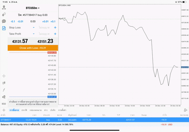 การเทรด Crypto BTCUSD 0.03 lot แอพเล่นหุ้น mt5 โบรกเกอร์ forex exness