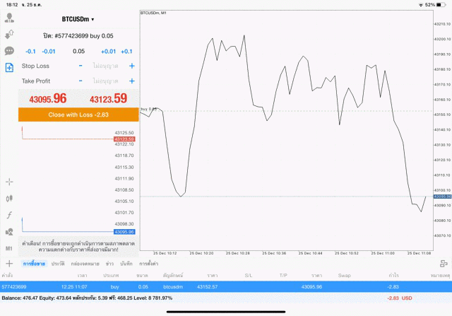 การเทรด Crypto BTCUSD 0.05 lot แอพเล่นหุ้น mt5 โบรกเกอร์ forex exness