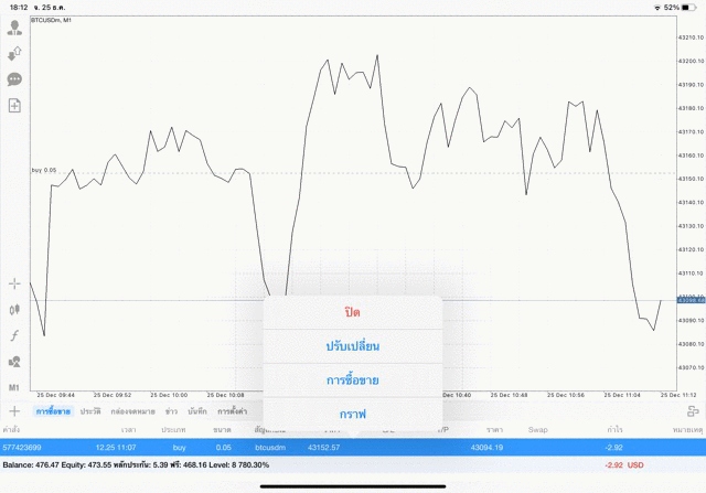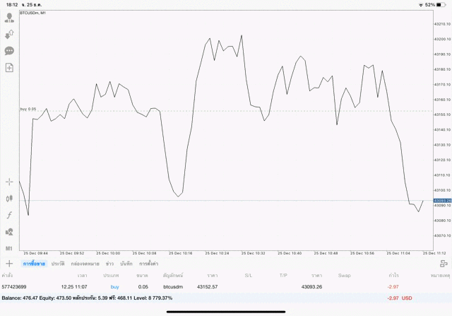 เริ่มแล้ว การเทรด Crypto BTCUSD บนแอพเล่นหุ้น mt4 เมื่อราคามีการเปลี่ยนแปลงจะส่งผลต่อกำไรหรือขาดทุนขึ้นกับการเทรดครั้งนี้ เริ่มต้น ติดลบก่อนนะ