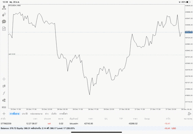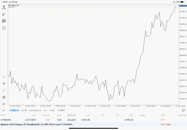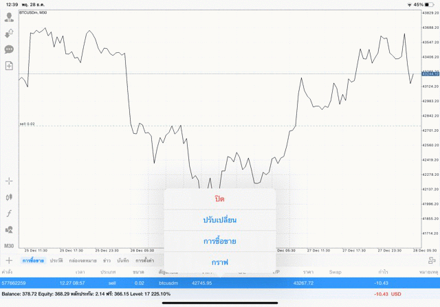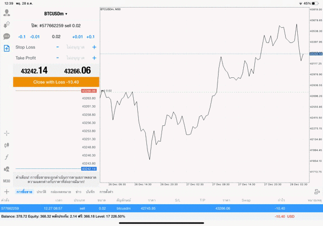 เริ่มแล้ว การเทรด Crypto BTCUSD 0.02 lot บนแอพเล่นหุ้น mt4 เมื่อราคามีการเปลี่ยนแปลงจะส่งผลต่อกำไรหรือขาดทุนขึ้นกับการเทรดครั้งนี้ เริ่มต้น ติดลบก่อนนะ