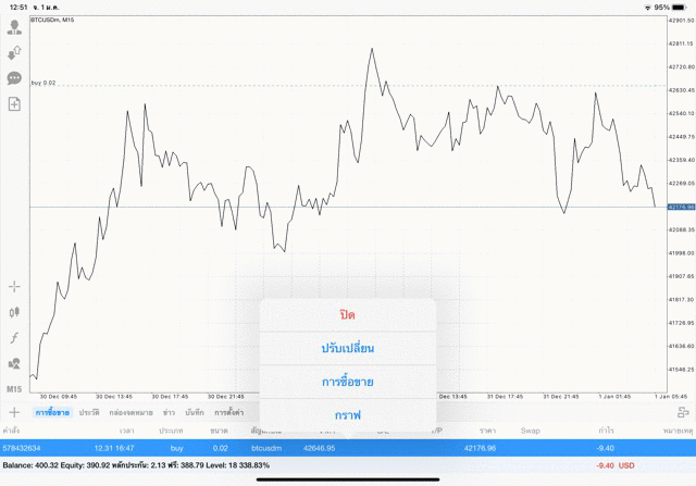 เริ่มแล้ว การเทรด Crypto BTCUSD 0.02 lot บนแอพเล่นหุ้น mt4 เมื่อราคามีการเปลี่ยนแปลงจะส่งผลต่อกำไรหรือขาดทุนขึ้นกับการเทรดครั้งนี้ เริ่มต้น ติดลบก่อนนะ