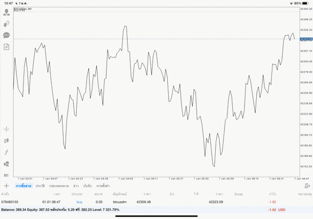 เริ่มแล้ว การเทรด Crypto BTCUSD 0.05 lot บนแอพเล่นหุ้น mt4 เมื่อราคามีการเปลี่ยนแปลงจะส่งผลต่อกำไรหรือขาดทุนขึ้นกับการเทรดครั้งนี้ เริ่มต้น ติดลบก่อนนะ