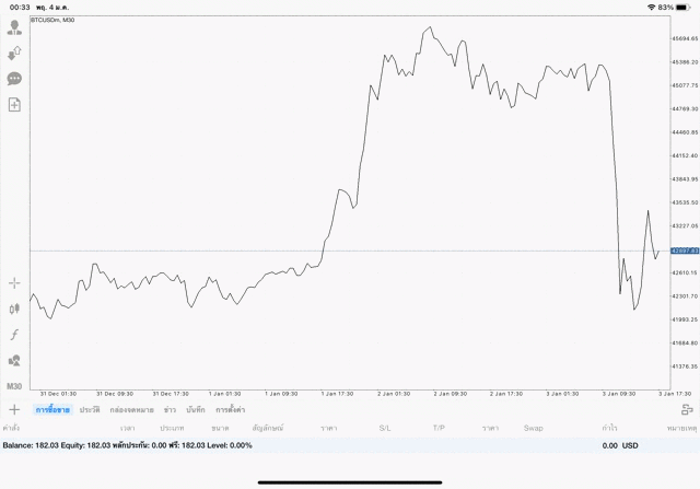 การเทรด Crypto BTCUSD แบบ CFD บนแอพเล่นหุ้น Meta Trader 4 หรือ Mt4