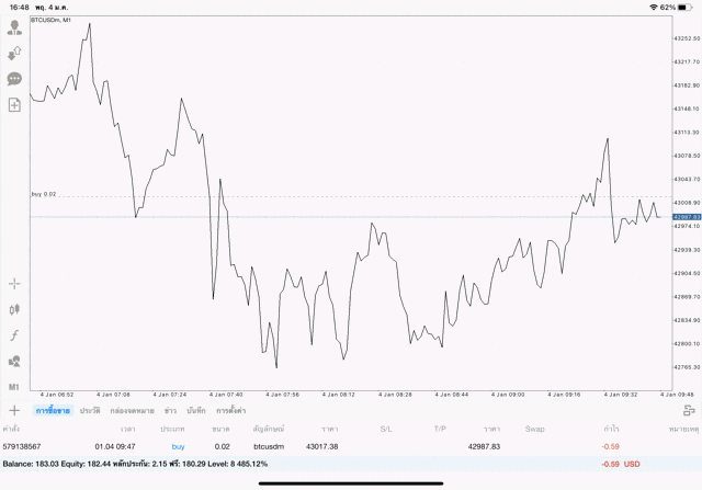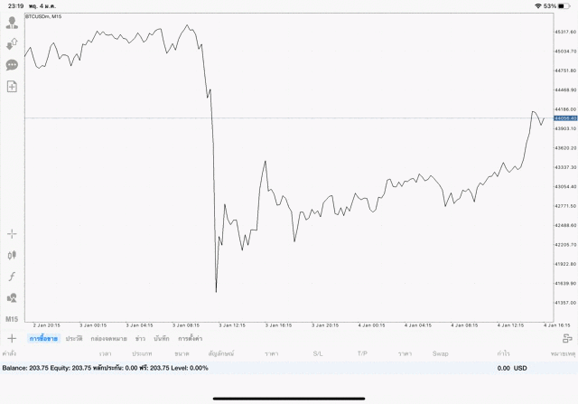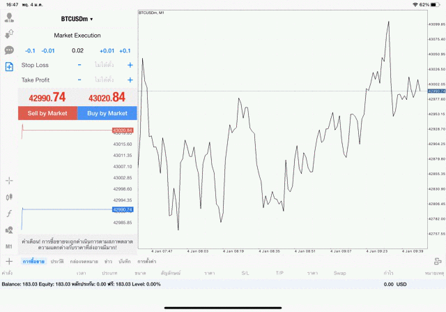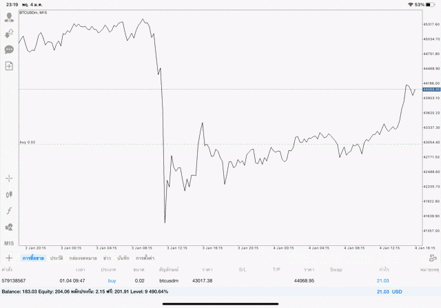 เริ่มแล้ว การเทรด Crypto BTCUSD 0.02 lot บนแอพเล่นหุ้น mt4 เมื่อราคามีการเปลี่ยนแปลงจะส่งผลต่อกำไรหรือขาดทุนขึ้นกับการเทรดครั้งนี้ เริ่มต้น ติดลบก่อนนะ