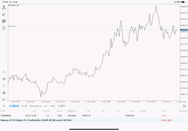 เริ่มแล้ว การเทรด Crypto BTCUSD 0.03 lot บนแอพเล่นหุ้น mt4 เมื่อราคามีการเปลี่ยนแปลงจะส่งผลต่อกำไรหรือขาดทุนขึ้นกับการเทรดครั้งนี้ เริ่มต้น ติดลบก่อนนะ