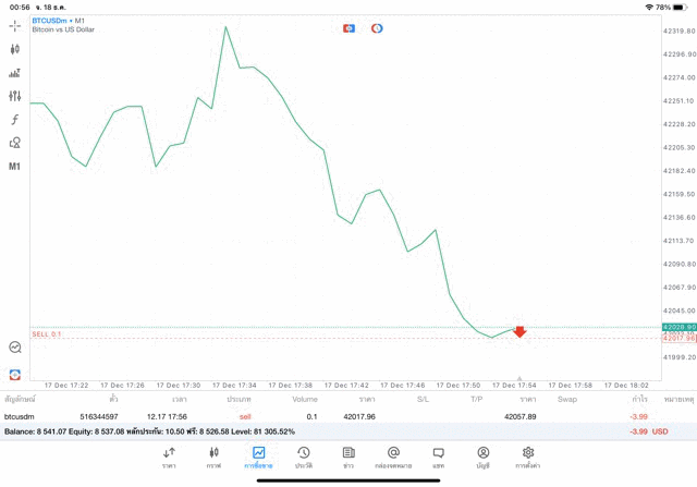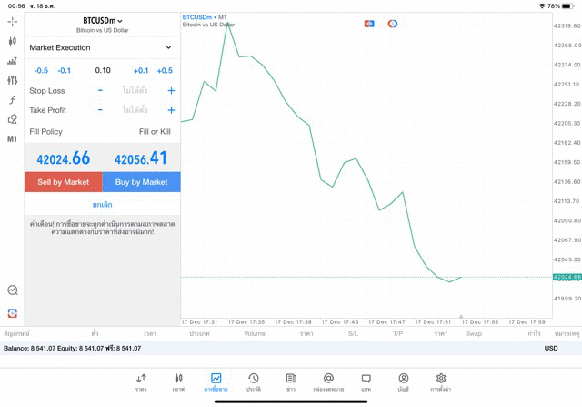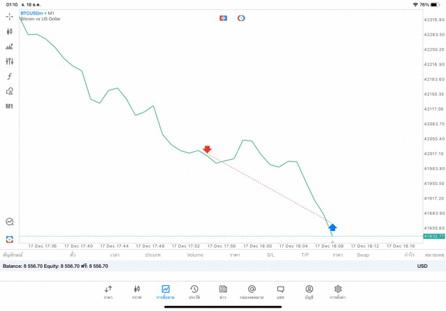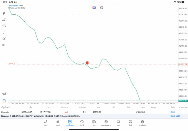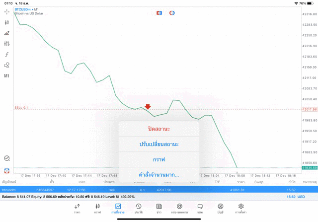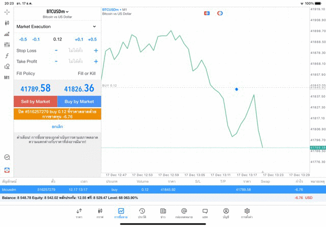 เริ่มแล้ว การเทรด Crypto BTCUSD บนแอพเล่นหุ้น mt5 ติดลบก่อน เมื่อราคามีการเปลี่ยนแปลงจะส่งผลต่อกำไรหรือขาดทุนขึ้นกับการเทรดครั้งนี้