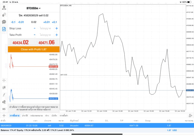 คลิ๊กปุ่มสีส้ม ปิดการซื้อขายครั้งนี้ ในขณะส่งคำสั่งปิดราคาเปลี่ยนแปลงยังมีผลต่อผลกำไรหรือขาดทุน